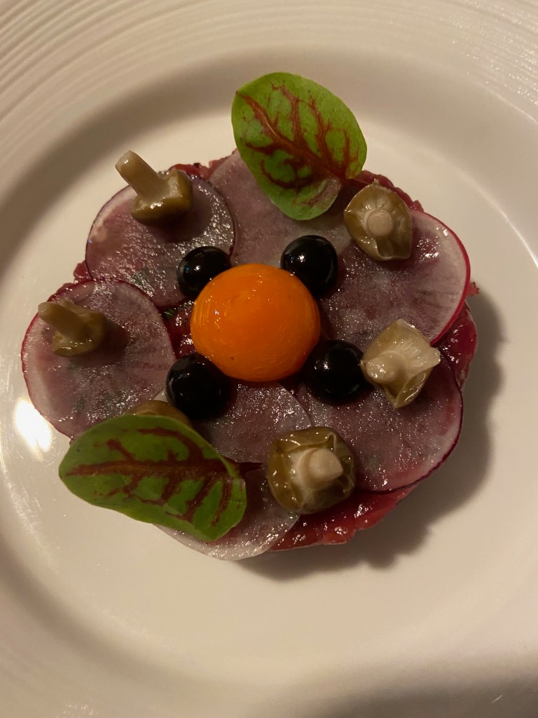 After being treated to some aperitifs by Sean, a friend of our son’s who works in the kitchen, we ate some amazing dishes from the tasting menu.