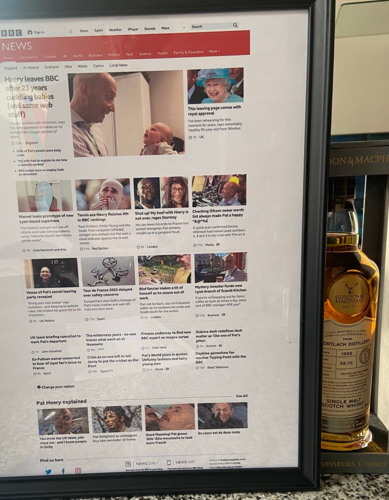 This evening I had a leaving do. Didn’t think it would be possible in a Covid world but about 40 of us had drinks and hugs in a central London pub. It was a lovely send off – people said and wrote nice things and I got a bit drunk.