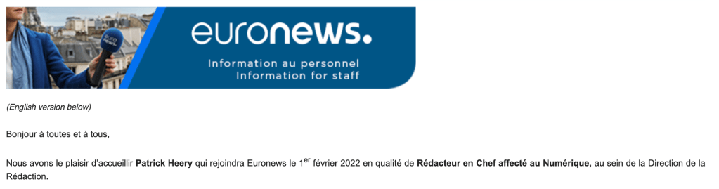 Euronews today released news of my arrival. The email is in both French and English so I was able to see the word numérique which I had learnt meant digital being used for real!