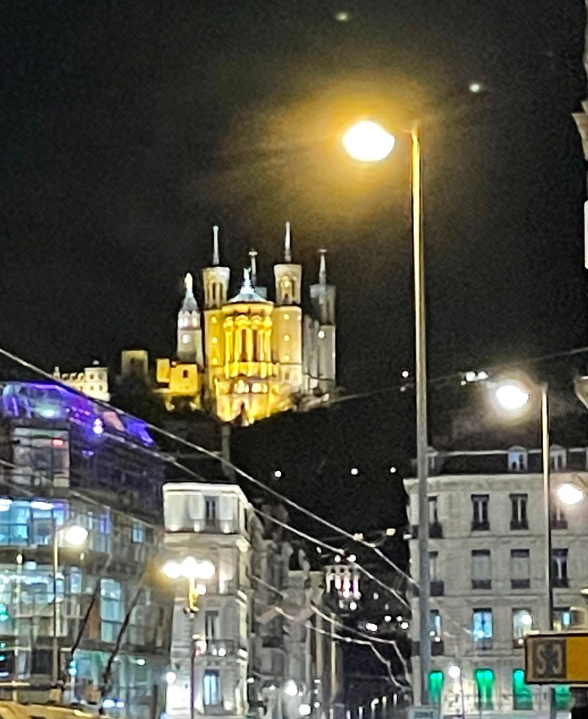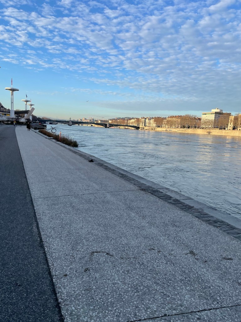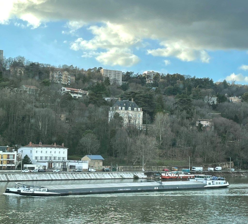 I told the owner I worked at Euronews and she told me she lives on the hill on the other side of the Saone but left the green cube out of this picture.
