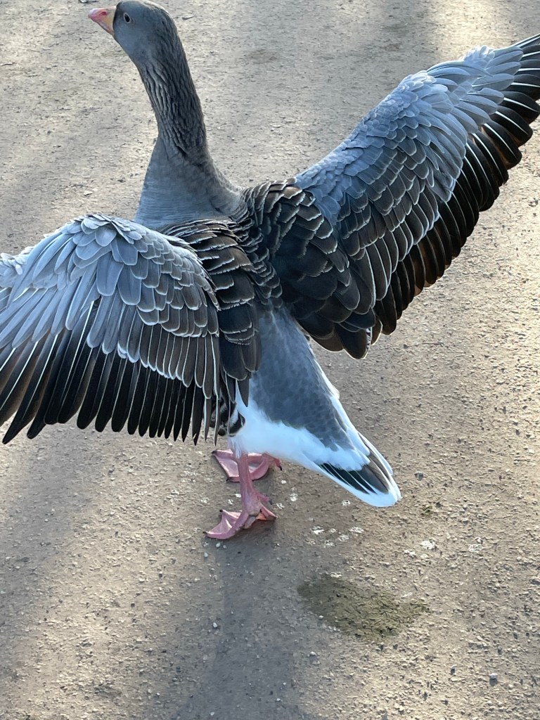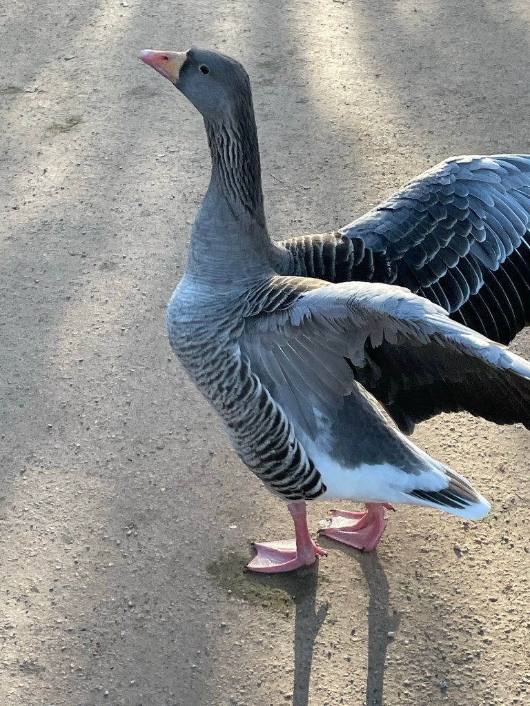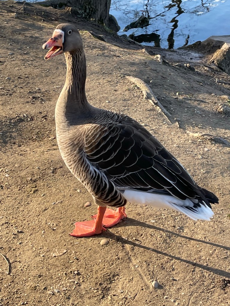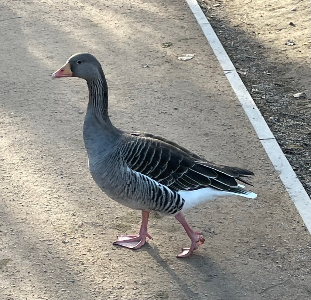 I went for another stroll to Parc de la Tete d’Or and saw plenty of very tame oies cendrees. Some were even eating des gauffres.