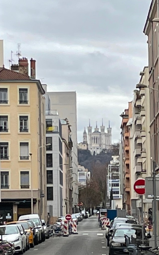 I love the way you often get glimpses of La Basilica de Notre-Dame de Fourviere as you walk around Lyon.