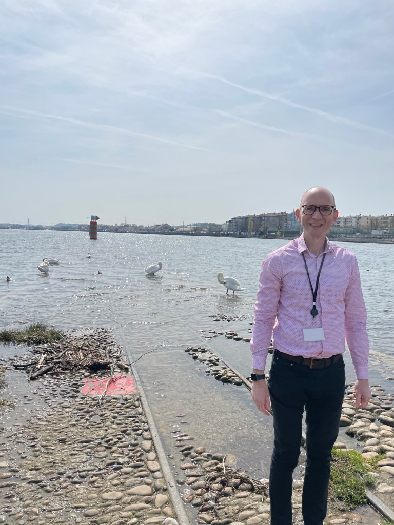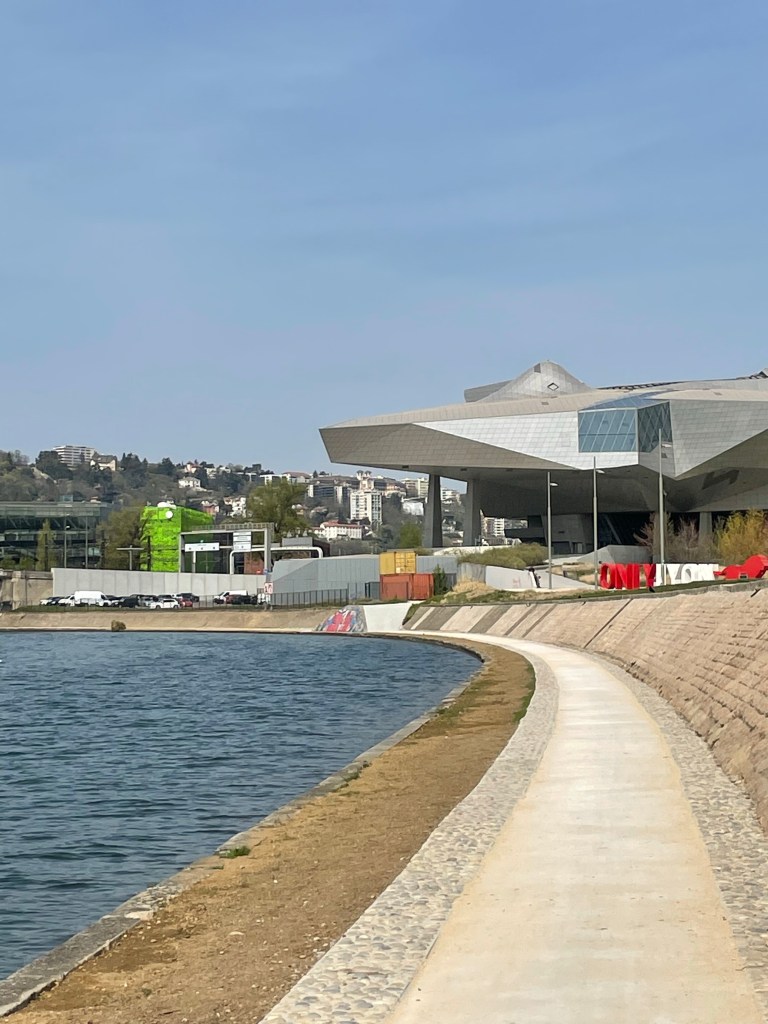 As it was a nice day, in my lunch hour I made it to La Confluence – the point where the rivers Saone and Rhone meet and become the Rhone. It is obviously a popular place with the swans as well – les cygnes.