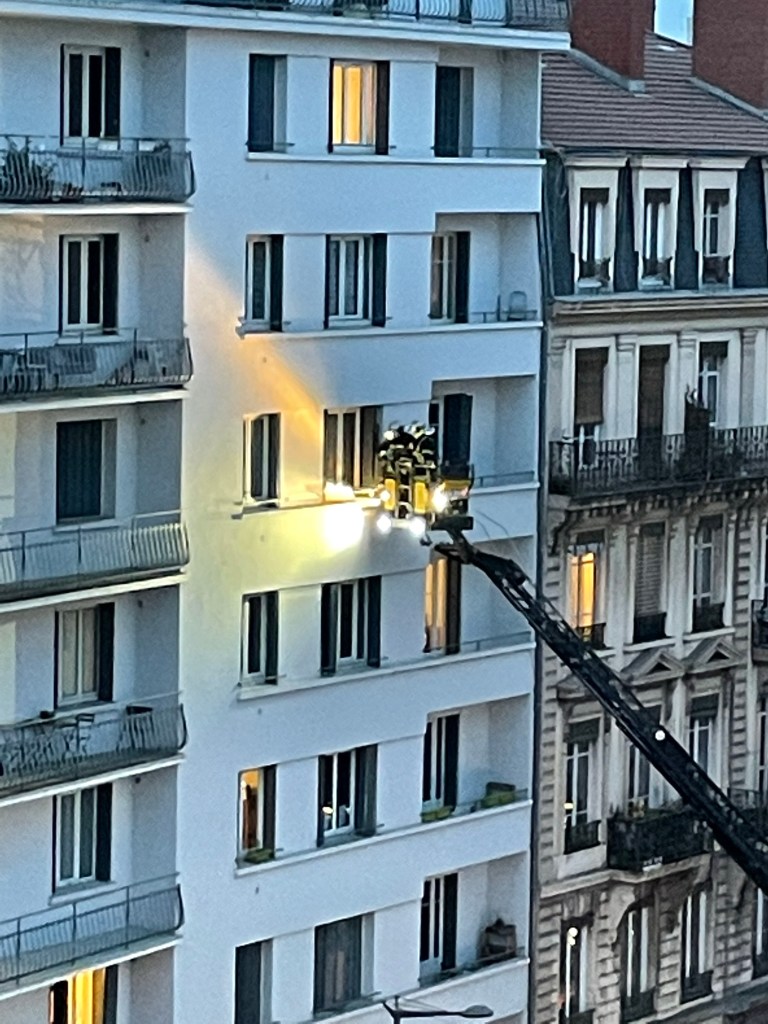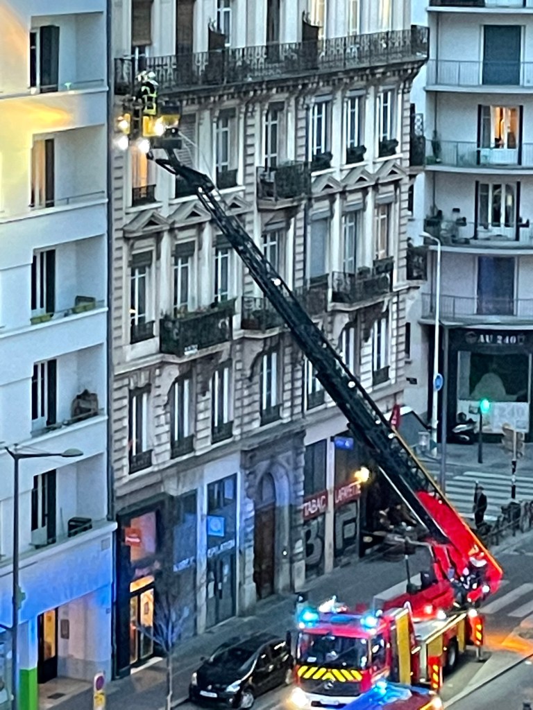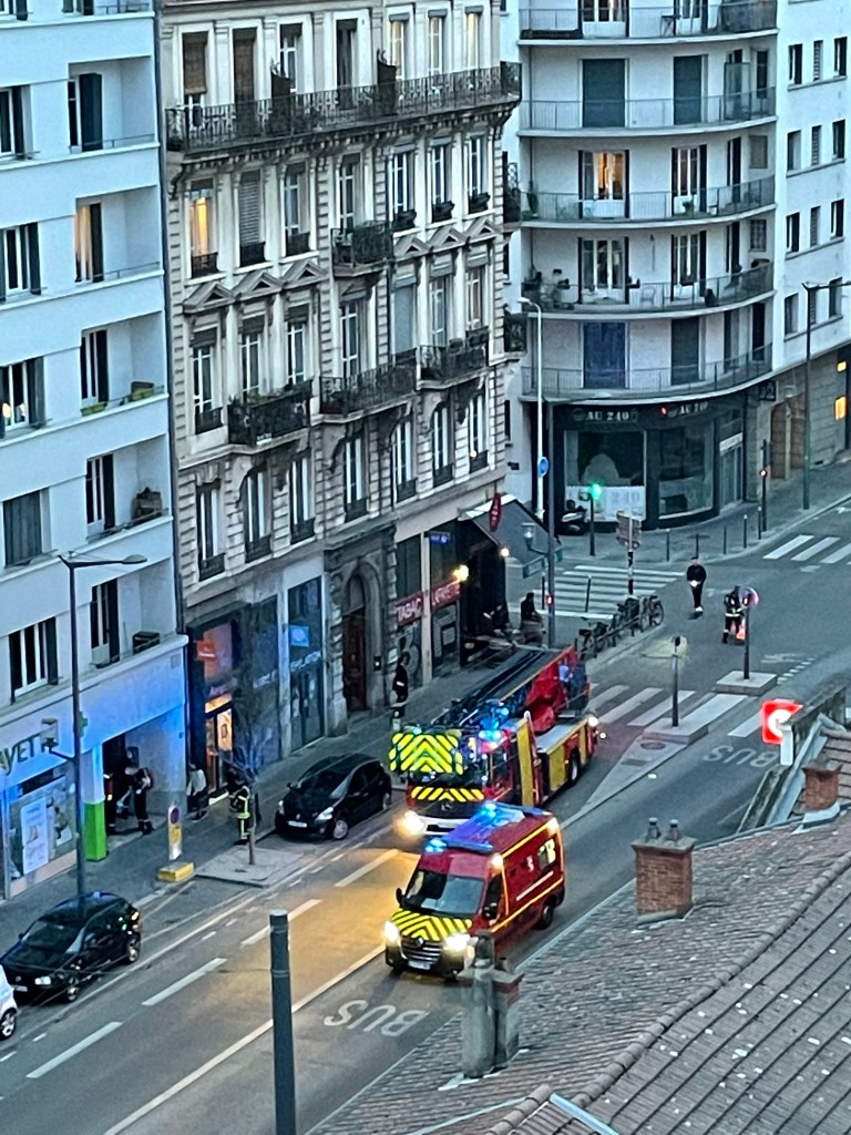 Tonight we witnessed some drama on Cours Lafayette – from our sixth floor window.