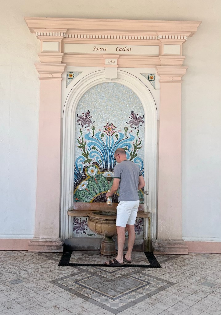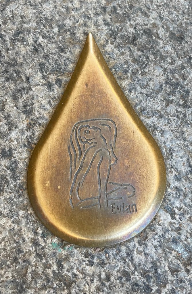 In Evian you can fill up your water bottle from the source for free. You just have to follow les gouttes.