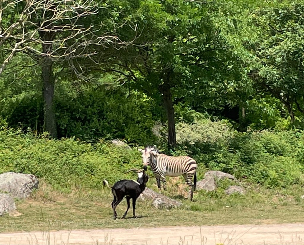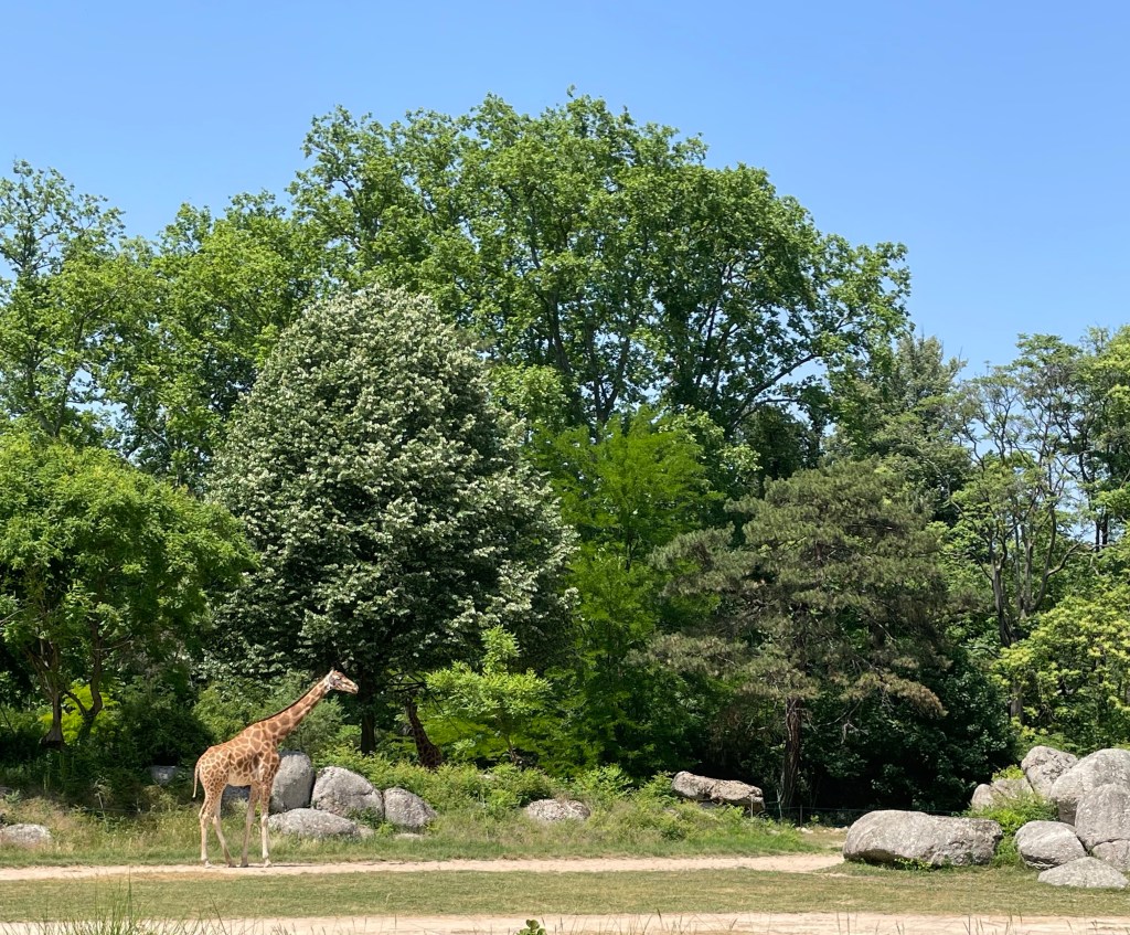 We passed the water lillies And the abutelon – just like ours in New MaldenThe giraffesThe zebra and a deer of some descriptionThe court is built on the velodrome in the park