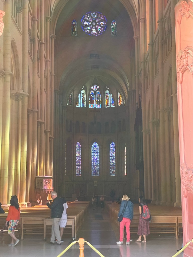 Blue skies over Fourviere And over l’Eglise Saint NizierStairs up to Fourviere Which city are we in?Sunlight streams into the CathedralDes belles fleurs Place Bellecour is huge