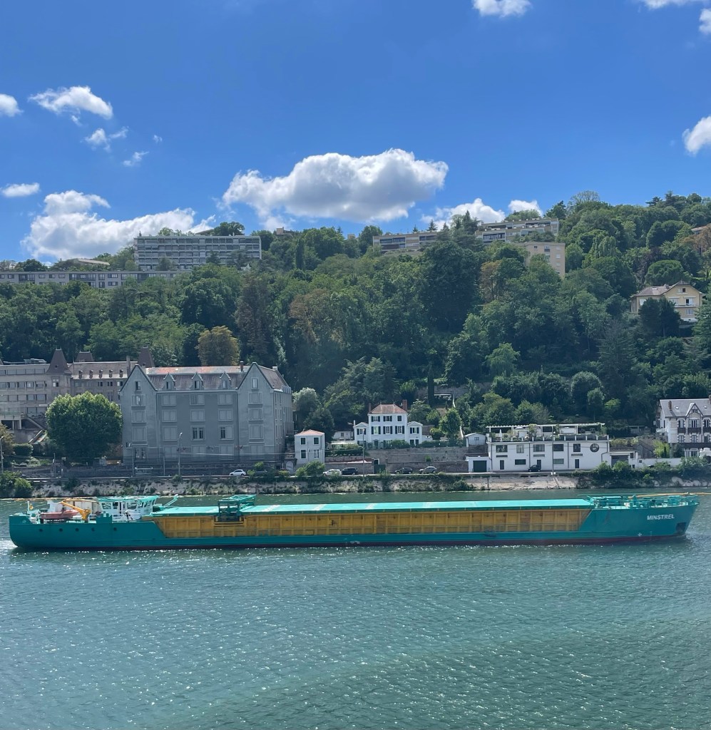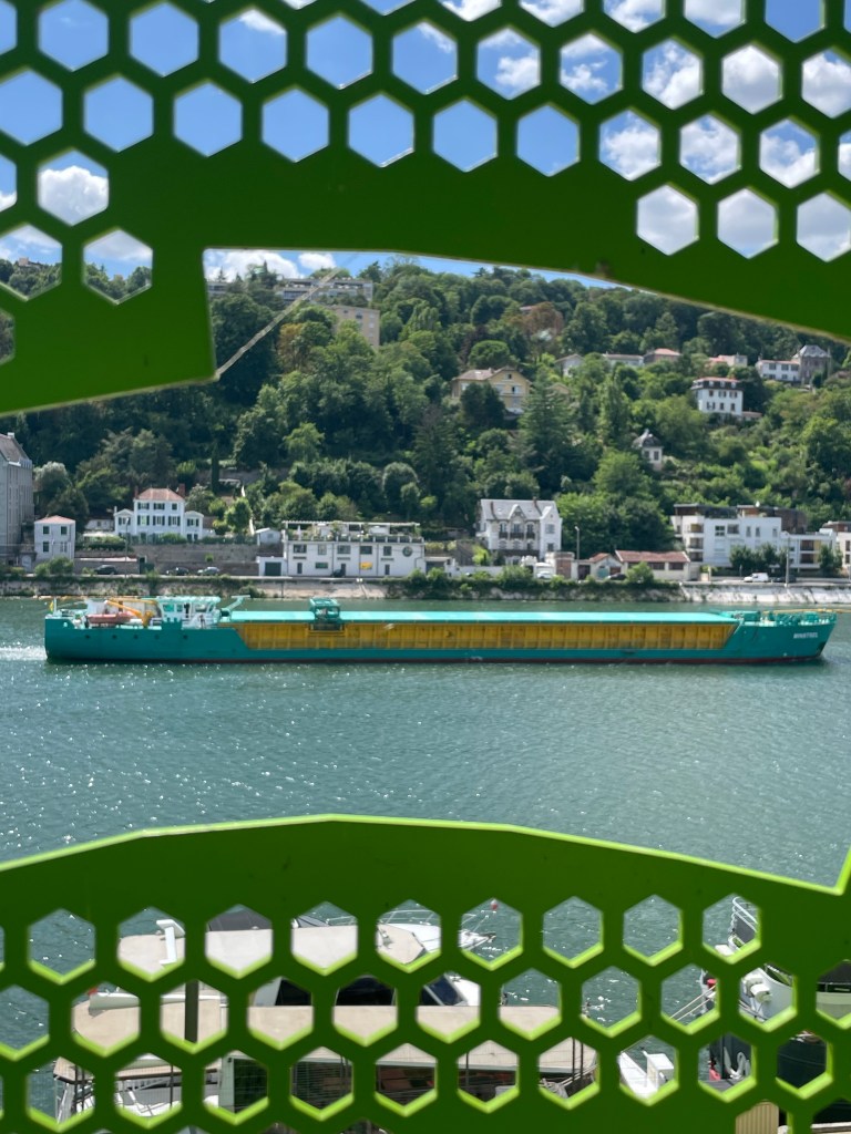 This green and yellow boat caught my eye – different from the usual craft on the Saône.