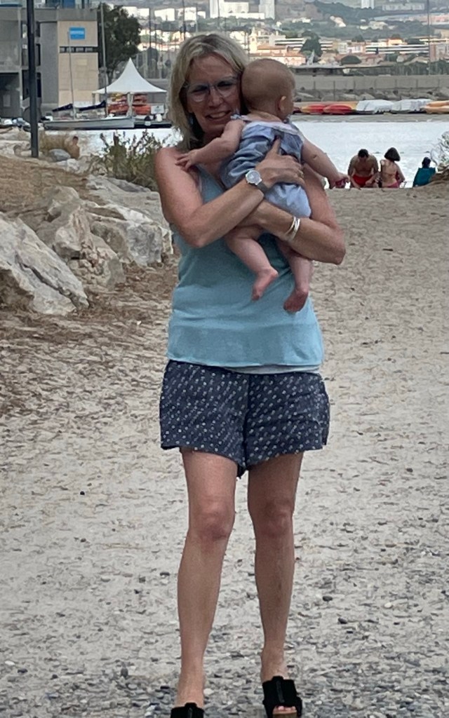 It was warmer than in March and I managed to swim for a bit longer. And of course we had a little helper with us.