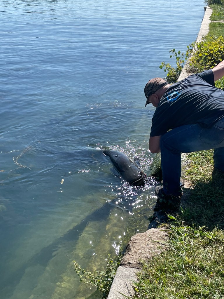 Mais le pêcheur n’a pas eu un filet donc quand le ligne s’etait cassé le silure a disparu.