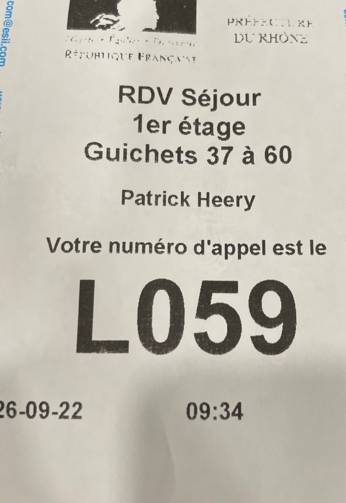 When it was my turn it was very quick. I had to laugh when the man asked for my Carte Vitale – I haven’t got that yet mate. Only been here eight months.