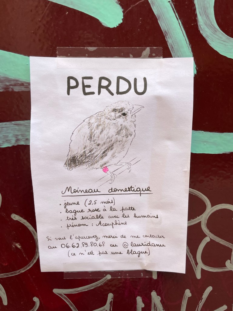 Please, if you are in La Croix Rousse, keep your eyes open for le petit moineau.