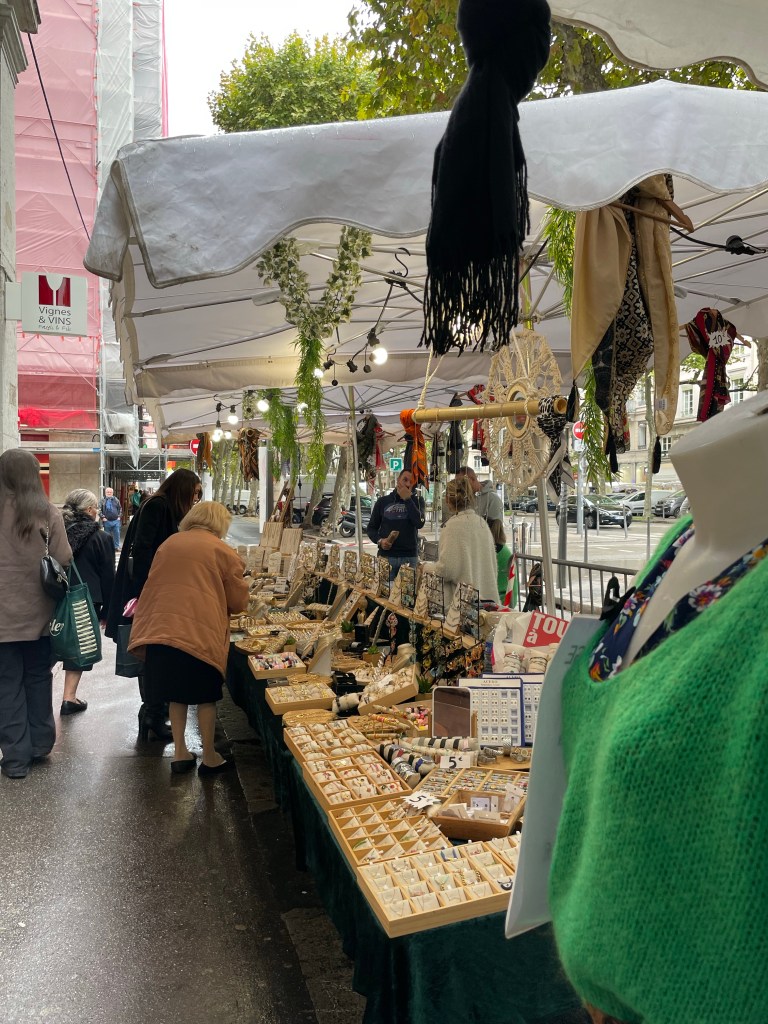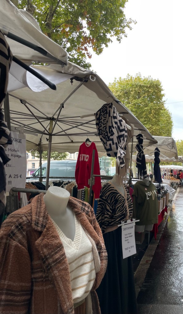 We went to the fair on our street. It was a bit rainy but there were lots of clothes for sale.