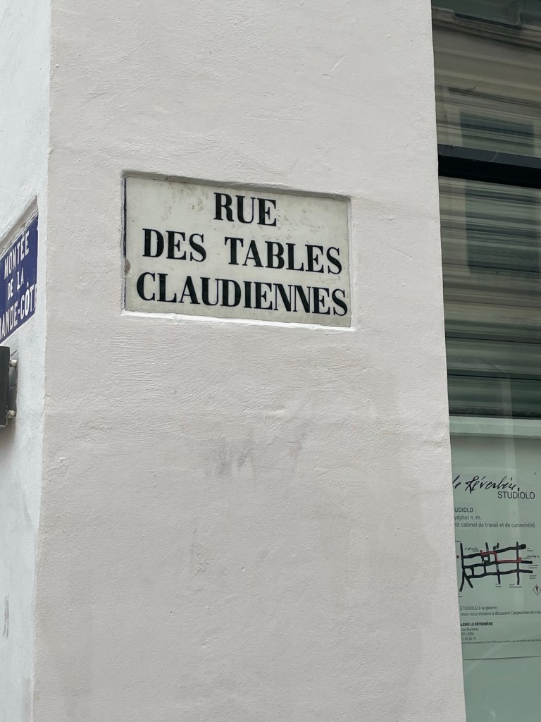 Hence la Rue des Tables Claudiennes in La Croix Rousse in Lyon.