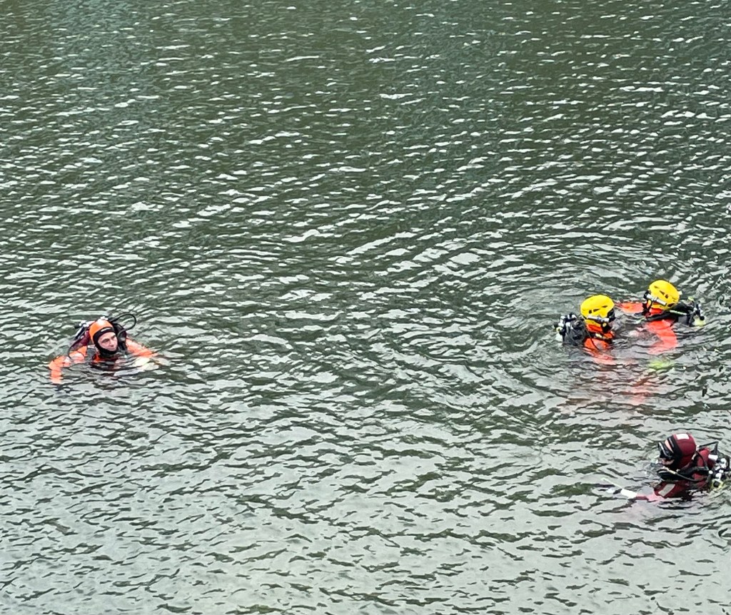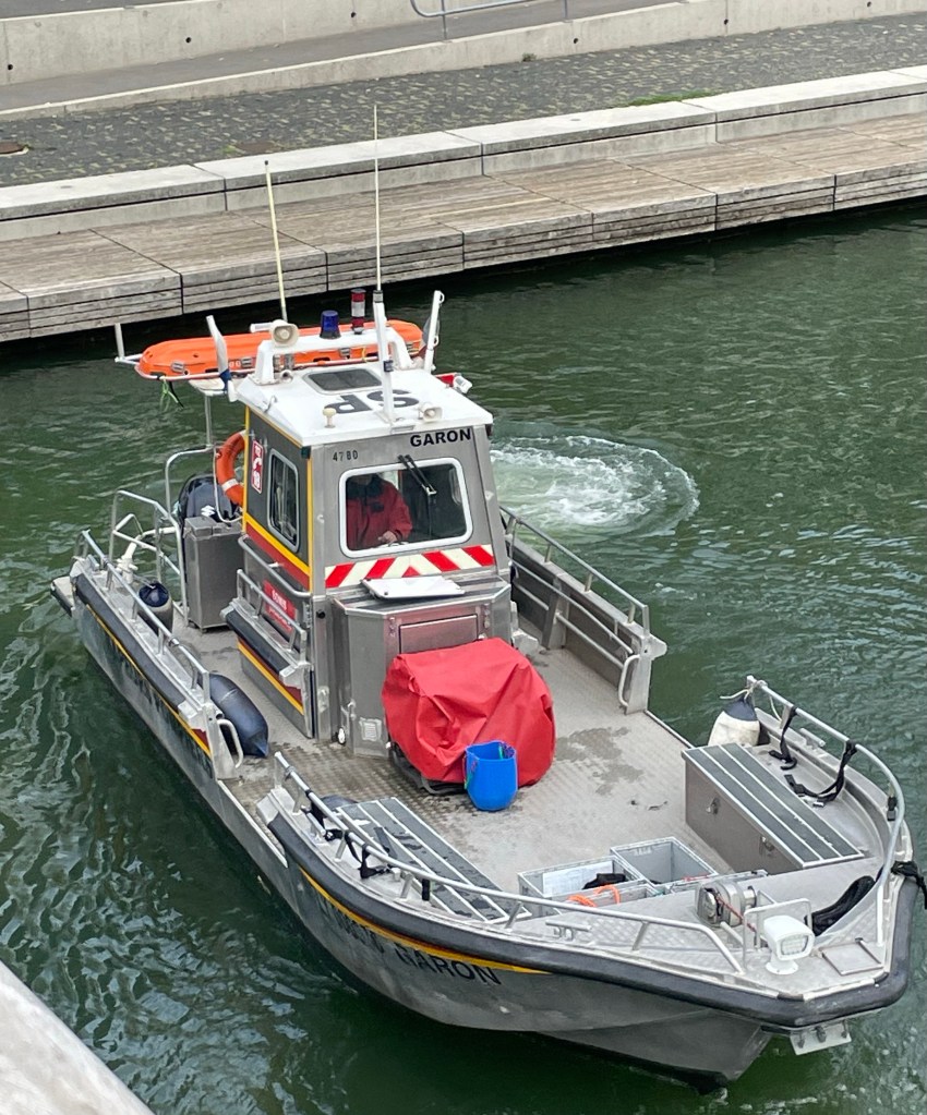 During my lunch break I came across this – firefighters in the river. It looked like a training exercise. Formation riviére.