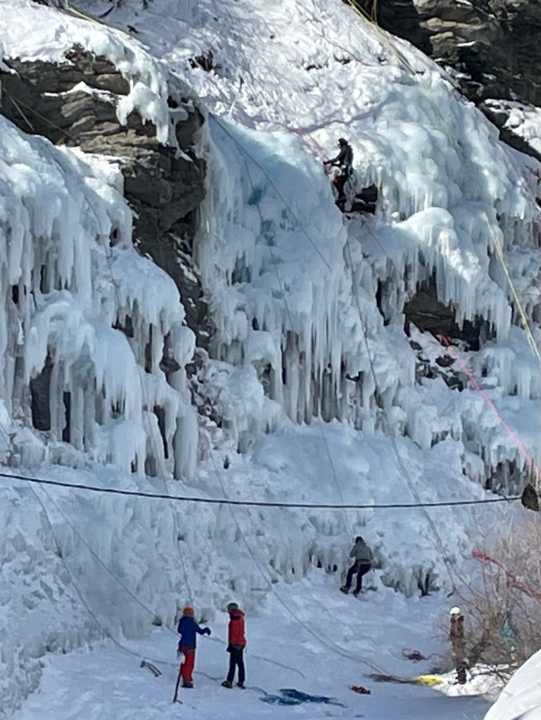 When we explored the village we saw some people with ice picks climbing an icy cliff face.