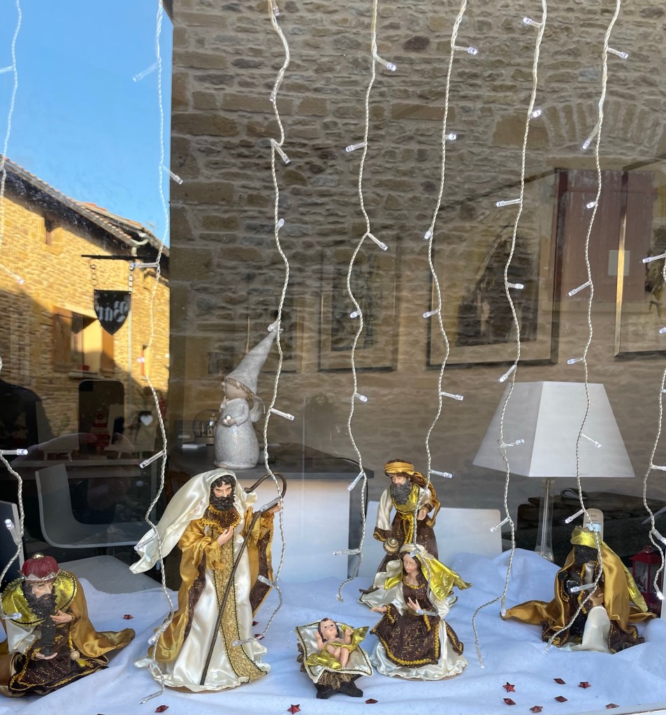 Cath saw that our favourite village in the Beaujolais region was having a display of Christmas crèches. But today was the last day – so off we went.