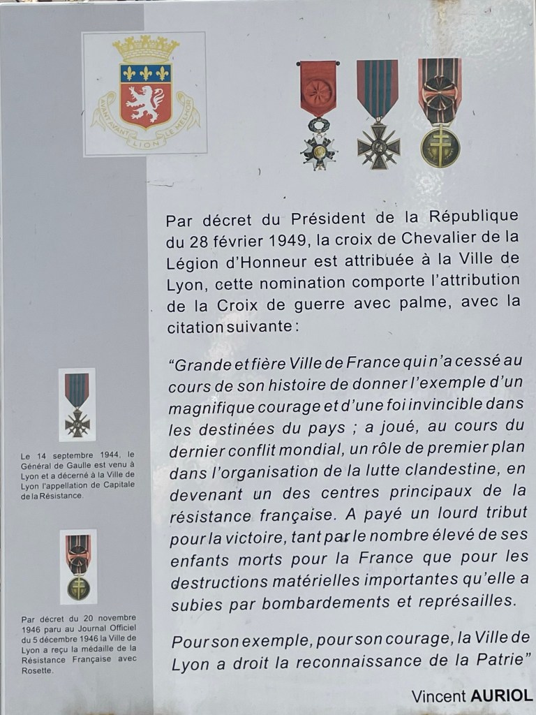 There are constant reminders in Lyon about its history in the war. Good to see that it was recognised in this way.