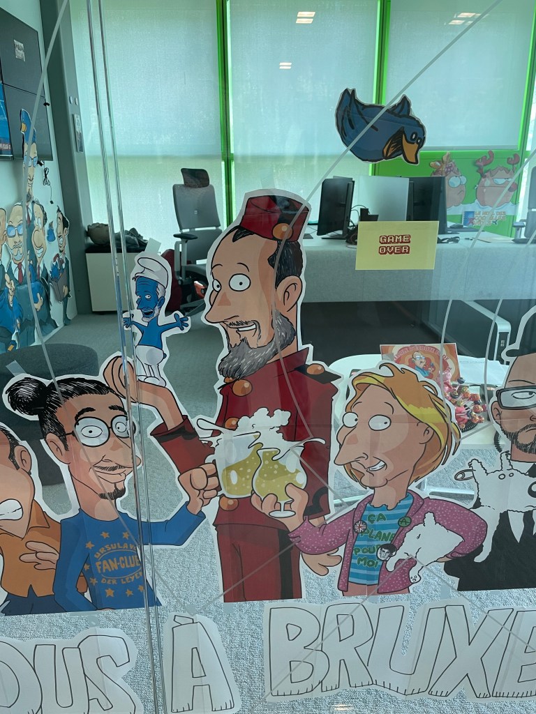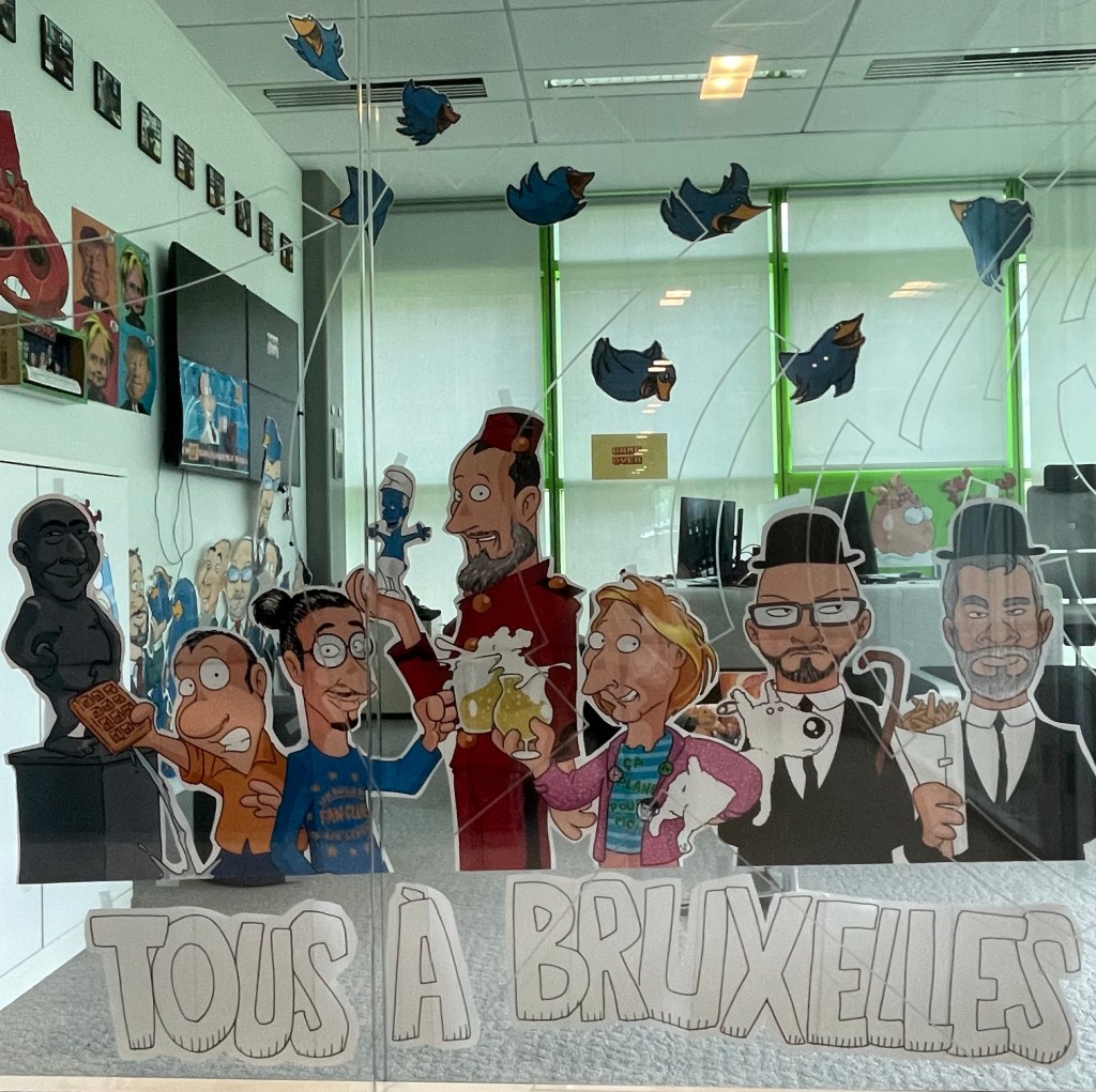 Of course the faces of all the Belgian celebrities have been replaced with those of our graphistes.
