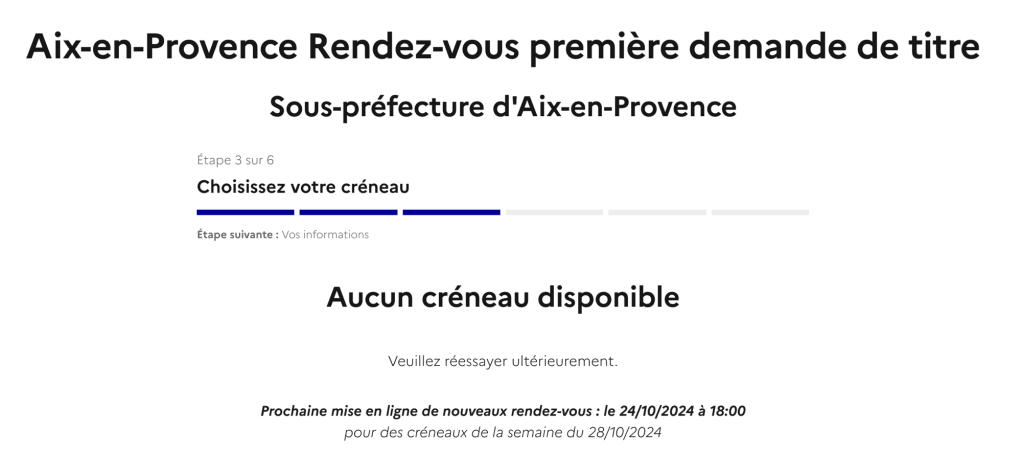 Today was the day that rendez-vous became available at the sous-prefecture d’Aix.