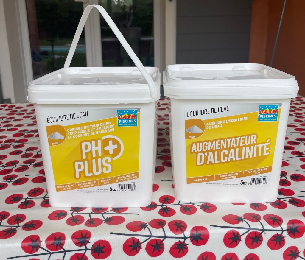 Then it was the simple matter of reading the French instructions, working out the capacity of our pool then mixing up and adding the treatments.