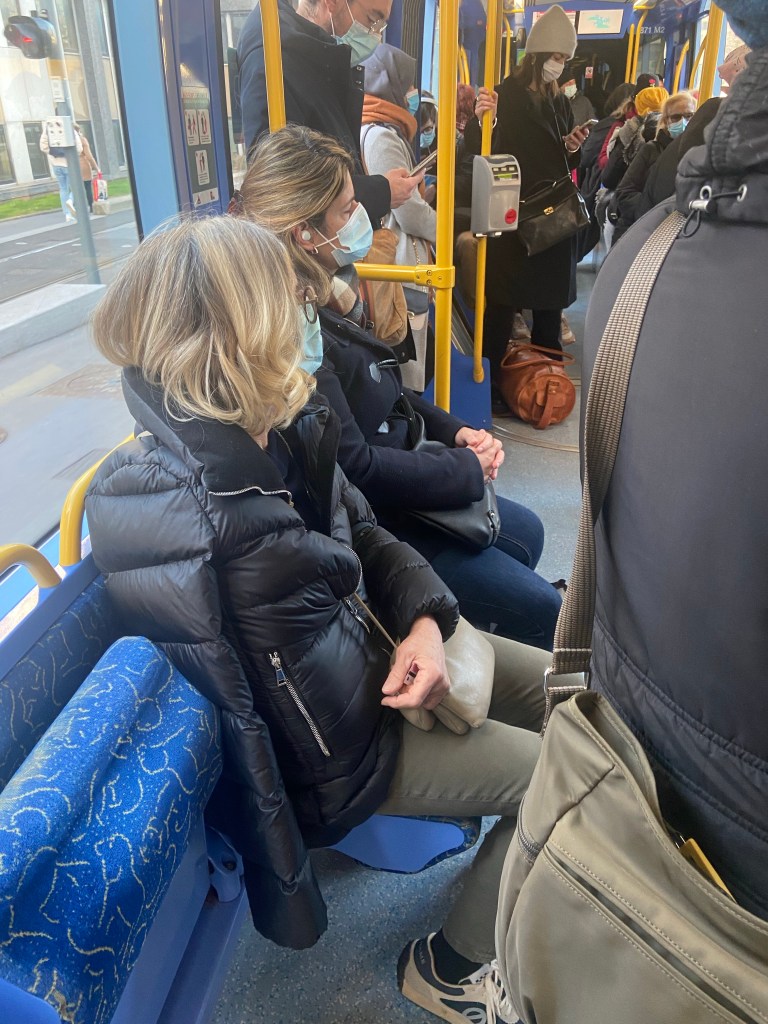 A brisk walk to the tram stop and then we are off. Although – we weren’t. It came to an immediate screeching halt and I crashed into a woman sitting down. She screeched in pain and then I noticed she had her arm in a sling. Je suis desolé, excusez-moi madame-was the best I could offer.
